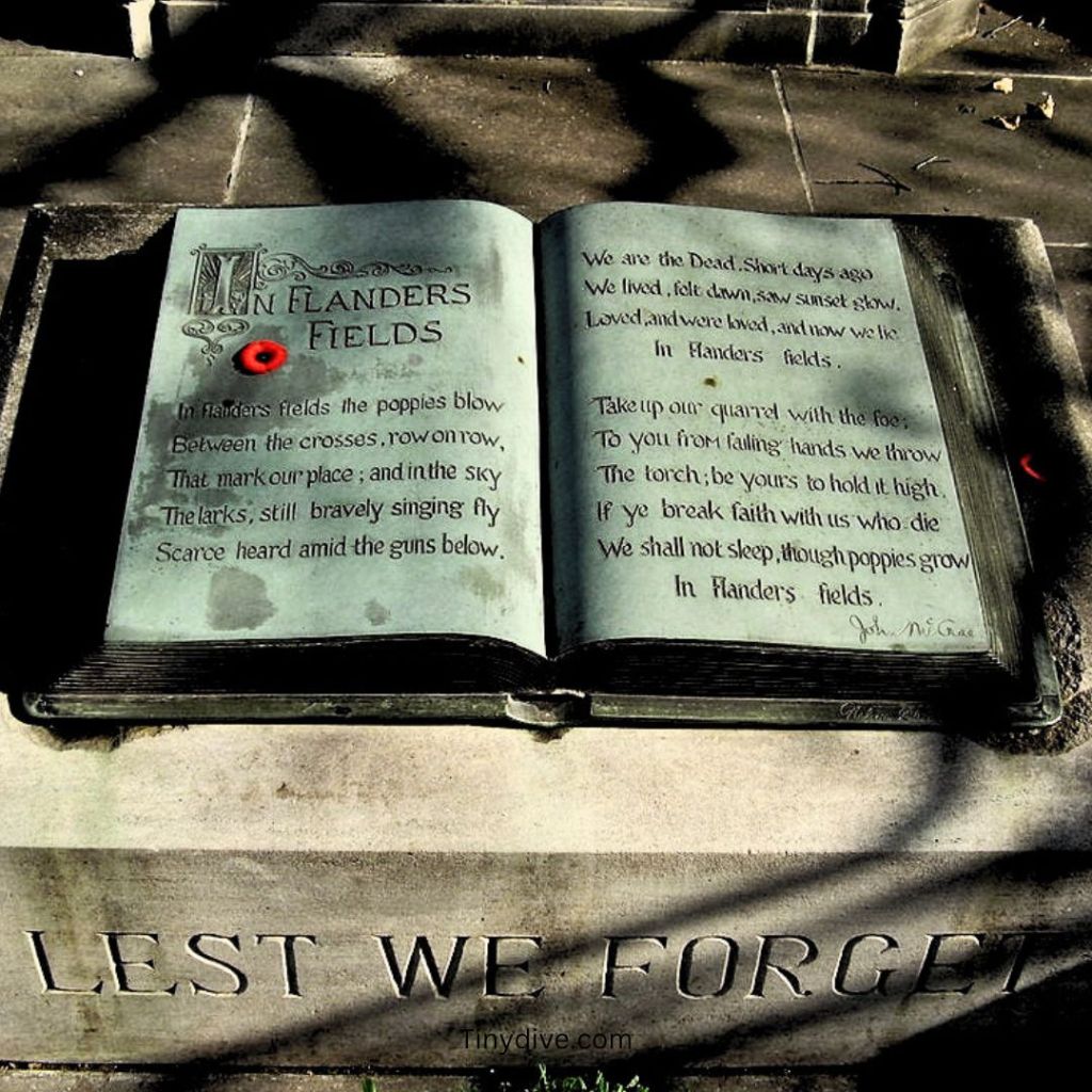 One of the most enduring symbols of Remembrance Day is the red poppy, inspired by the famous poem In Flanders Fields written by Canadian physician Lieutenant-Colonel John McCrae. McCrae wrote the poem in 1915 after witnessing the brutal realities of war and the fields of red poppies growing amid the graves of fallen soldiers in Belgium. The poppy quickly became a symbol of remembrance and respect. In 1921, the Great War Veterans’ Association (a precursor to the Royal Canadian Legion) adopted the poppy as a symbol of remembrance in Canada, a tradition that continues to this day. Each year, the Royal Canadian Legion sells poppies, with proceeds supporting veterans and their families.